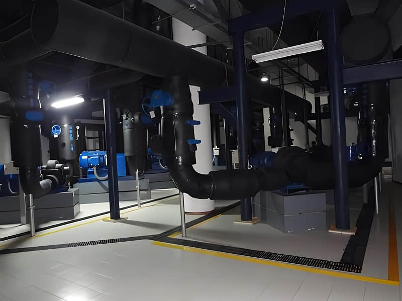 一、設備減振處理:對機房內的設備進行減振處理,采用減震器和減震墊等減振材料,減少設備振動產生的噪音。同時,對管道支撐進行優化設計,減少管道振動。